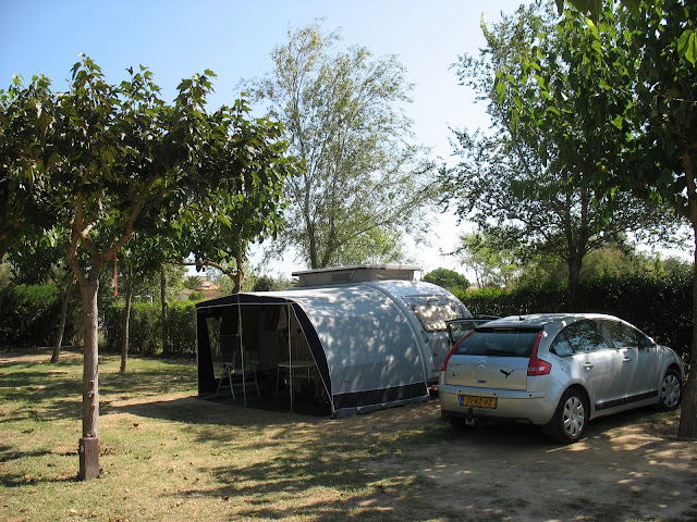 Roses fietsen. Na de koffie werd het echter heel warm en bijna geen wind. Maar rustig in de schaduw van de bomen gebleven. In de voorluifel en caravan was het ruim 30⁰ C. In de middag kwam er weer wat wind, die nauwelijks verkoeling bracht. |