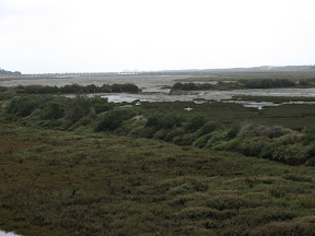 zigeunermarkt in Quateira. Bij de haven was een verse vismarkt. En in het centrum was een grote markt waar de bevolking hun zelf geteelde groenten en fruit verkochten. Daarna zijn we weer naar ons vogelkijkplekje Qunta do Lago gegaan. We hebben weer al de soorten gezien. Ook hebben we een flinke wandeling gemaakt langs de zoutpannen. Dit zijn grote vlakke stukken omdijkt land, waar men het zoute water laat verdampen. Het zout blijf dan achter en wordt dan opgeschept en op een hoop gedaan. Later in de middag kwam er wat bewolking. |