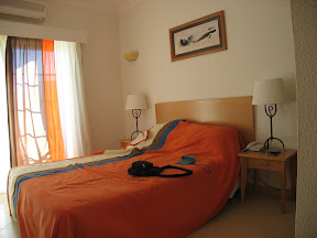 Omstreeks twee uur in de morgen waren we wakker. Even een beschuitje en wat thee gedronken. Op naar Amstelveen, het was erg rustig op de weg. Marco zou met ons meerijden naar Schiphol, en de auto bij hun zetten. Ik had gister al een boordings passen uitgeprint, dit kan 24 uur voor vertrek. We moesten alleen onze bagage afgeven bij bagage droppunt in hal 3. Om bij onze gate te komen moesten we weer naar hal 1 waar we ook door de douane moesten. Bij Gré ging de pieper af, haar hoge wandelschoenen moesten ook uit. We kwamen nu in de z.g. taxfry zone met allemaal winkeltjes. Rustig afwachten in de relax stoelen, langzamerhand werd het al lichter. We hadden een rustige vlucht geen turbulentie. We vlogen boven Rotterdam, Amiens, Bretagne over de Golf van Biskaje richting Lissabon. Boven Spanje kregen we eindelijk wat zicht naar beneden. Begin Spanje lag er nog veel sneeuw op de Pyreneeen. Bij Lissabon draaiden we iets naar de Algarve. Bij Aubufera weer iets zodat we recht op het vliegveld van Faro landen. Hier werden we opgevangen door een hostess, die ons verdeelden voor transfer naar de appartementen. Na een ritje van drie kwartier kwamen we aan bij ons appartement. (Club Humbria in Olhos d’ Agua.) Inchecken kregen we appartement G 172 een schitterend appartement. Kamer met keuken en 2 slaapbanken TV en airco. Slaapkamer met airco, hal en een badkamer met ligbad, douche in bad, wc en bidet en een groot badmeubel ook was er verwarming en een feun. Over de gehele breedte was een balkon met droogrek, tafeltje en 2 stoelen. Balkon was aan de zuidkant met uitzicht op het zwembad. S’Middags kwam de hostess van Primafera nog één en ander uitleggen. Daarna hebben we nog even naar het strand gelopen en even naar de supermarkt die een paar honderd meter van het complex aflicht. Voor de rest lekker in de zon op ons balkon geweest. ![]() Andere kant van het strandje. ![]() Bankbedden open schuifdeuren naar balkon. Met TV, airco en een ventilator. ![]() Slaapkamer met schuifdeuren naar balkon, compleet met airco. ![]() Twee hoog links, is ons appartement |